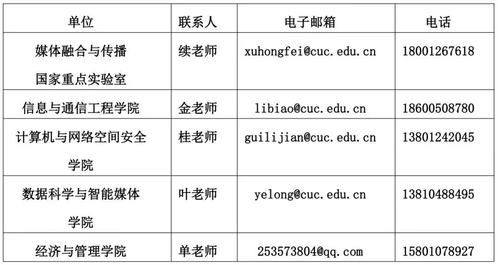 相关教学科研单位联系方式: